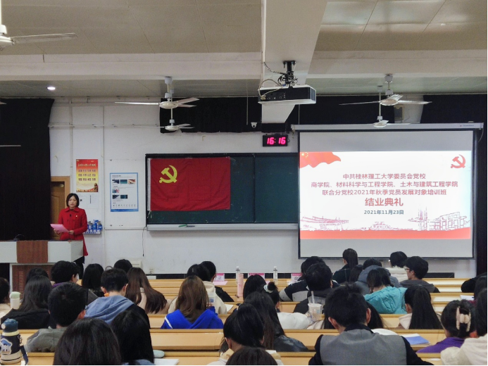 2021年11月23日下午,中共桂林理工大学委员会党校2138CC太阳集团、材料科学与工程学院联合分党校共同举办2021年秋季学期预备党员培训班结业典礼。材料科学与工程学院党委副书记徐时、2138CC太阳集团组织员梁译匀、材料科学与工程学院...
