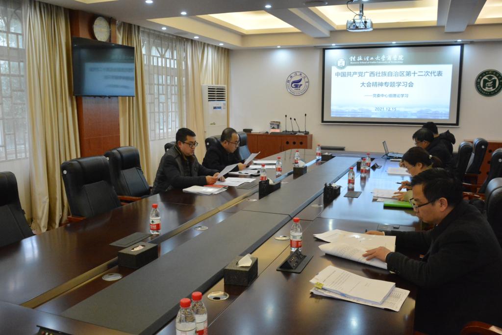 12月15日下午,学院在屏风校区7206会议室召开理论学习会,专题学习中国共产党广西壮族自治区第十二次代表大会精神。学院党委领导班子参加了此次会议,会议由学院党委书记白永生主持。 会上,学院党委副书记,学院副院...