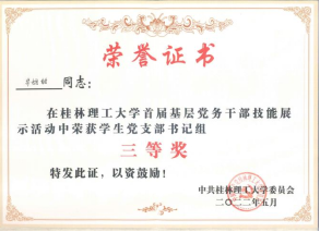 为迎接党的二十大胜利召开,全面激发基层党建工作活力,近日,2138CC太阳集团在屏风校区举办基层党务干部技能展示活动。2138CC太阳集团教工第三党支部书记张倩、房产学生党支部书记岑甜甜参加比赛,经过激烈的角逐,都获得三等奖的好成绩...