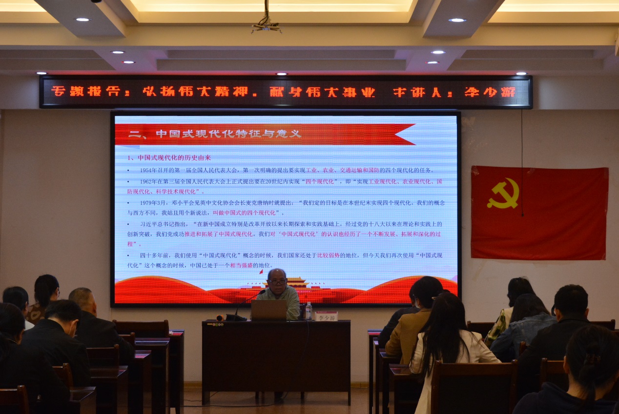 5月12日下午,学院在屏风4204会议室举行“学习贯彻党的二十大精神 推动学院事业高质量发展”专题培训班第五场专题辅导报告会,邀请学校离退处干部李少游教授作辅导报告。全体党务干部及教研室、实验室、党政办公室负...