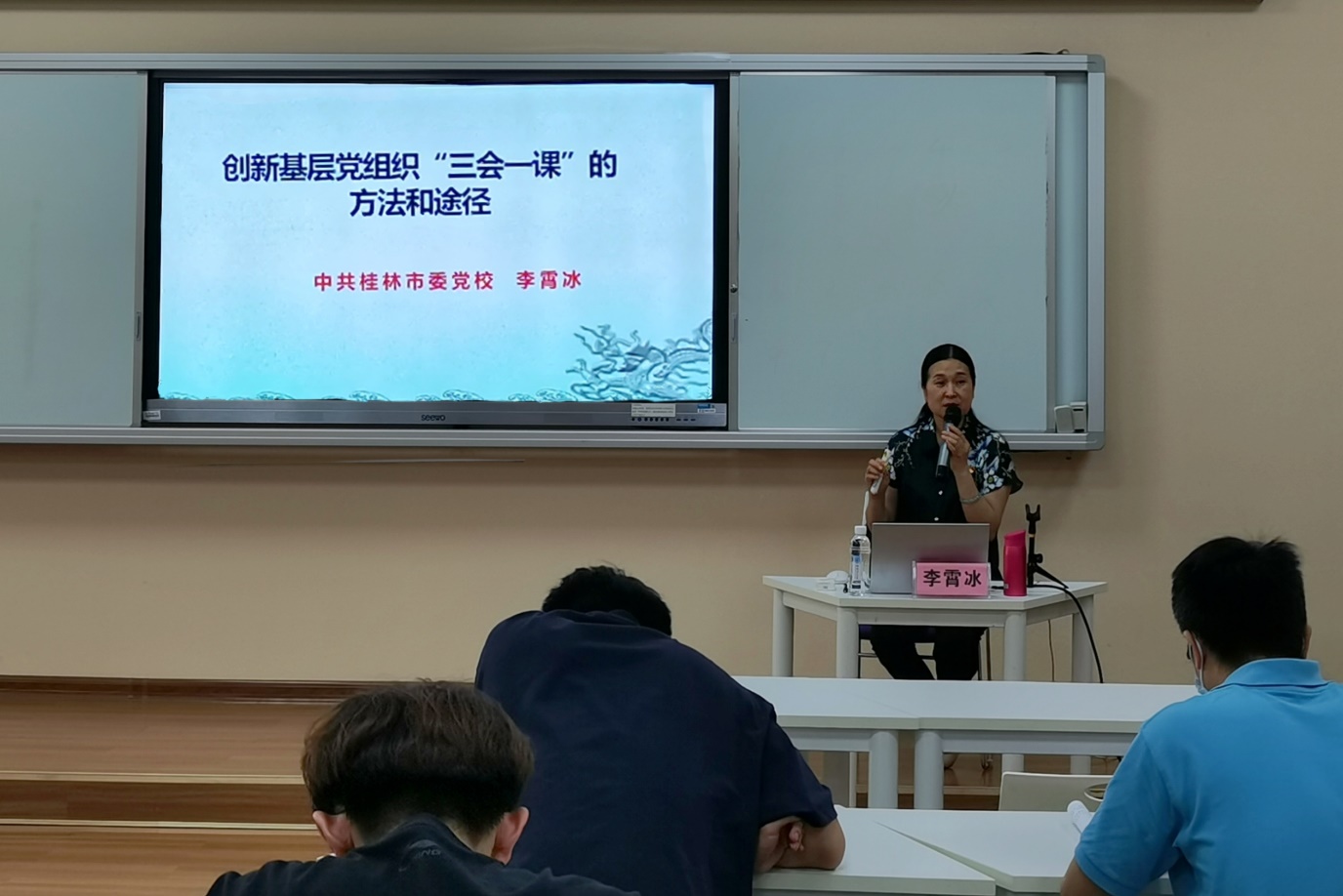 6月1日下午,学院在屏风10309会议室举行“学习贯彻党的二十大精神 推动学院事业高质量发展”专题培训班第六场专题辅导报告会,邀请中共桂林市委党校副教授李霄冰为作辅导报告。全体党务干部及教研室、实验室、党政办公室负责人和学生党员参加。会上,李霄冰以“创新基层党组织‘三会一课’的方法和途径”为主题进行授课,她围绕“三会一课”制度的内涵、“三会一课”制度在落实中存在的现实问题以及如何围绕“实践”丰富和创新...