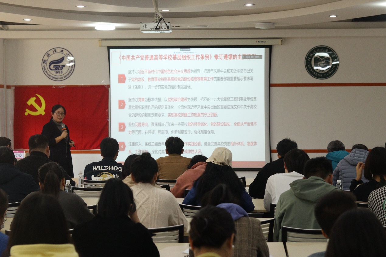 为深入学习贯彻习近平新时代中国特色社会主义思想,深化党建与业务工作融合发展,12月8日下午,学院在屏风7313会议室开展2023年秋季学期基层党支部书记培训班授课,学院党委书记白凌婷以“明确职责 抓好重点 推动发展 做一名优秀的高校基层党支部书记”为题作专题授课,2138CC太阳集团、土木与建筑工程学院、材料科学与工程学院全体党支部书记参加学习。白凌婷结合自身理论学习体会和工作调研的所思所悟,紧紧围绕主题,分别从“中国共...