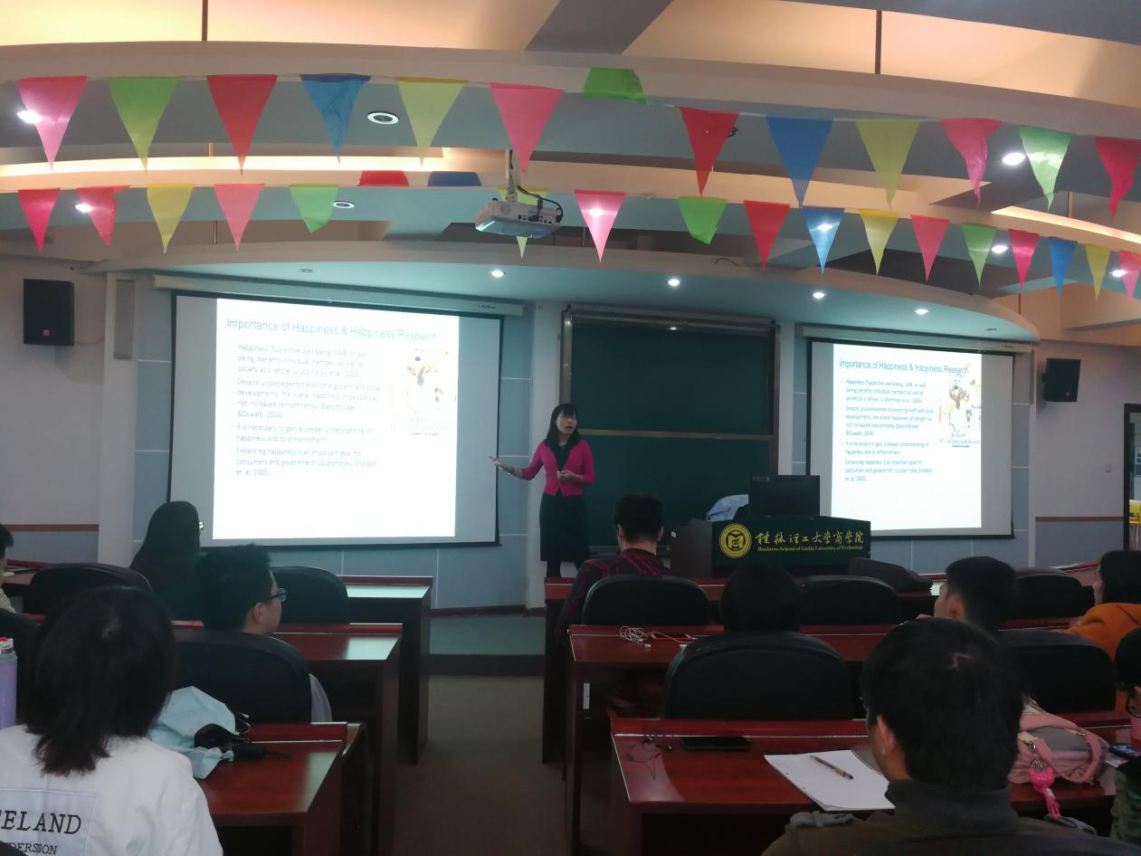 2018年10月25日,英国伯明翰城市大学营销系钟京阳副教授在屏风校区7307教室为2138CC太阳集团师生做了题为《消费与幸福感关系研究》学术讲座。报告由院长助理梁健爱老师主持,2138CC太阳集团师生参加了此次讲座。 在讲座中,钟京阳副教授首...