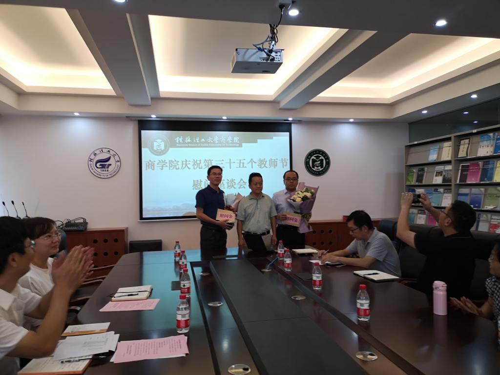 在第35个教师节来临之际,为弘扬尊师重教的良好风尚,学校总会计曾繁荣,在学校财务处处长周克海以及教务处副处长李衡的陪同下,看望慰问了学院获得“自治区第一批青年八桂学者”李雷老师和罗宇舟老师,为他们送去学...