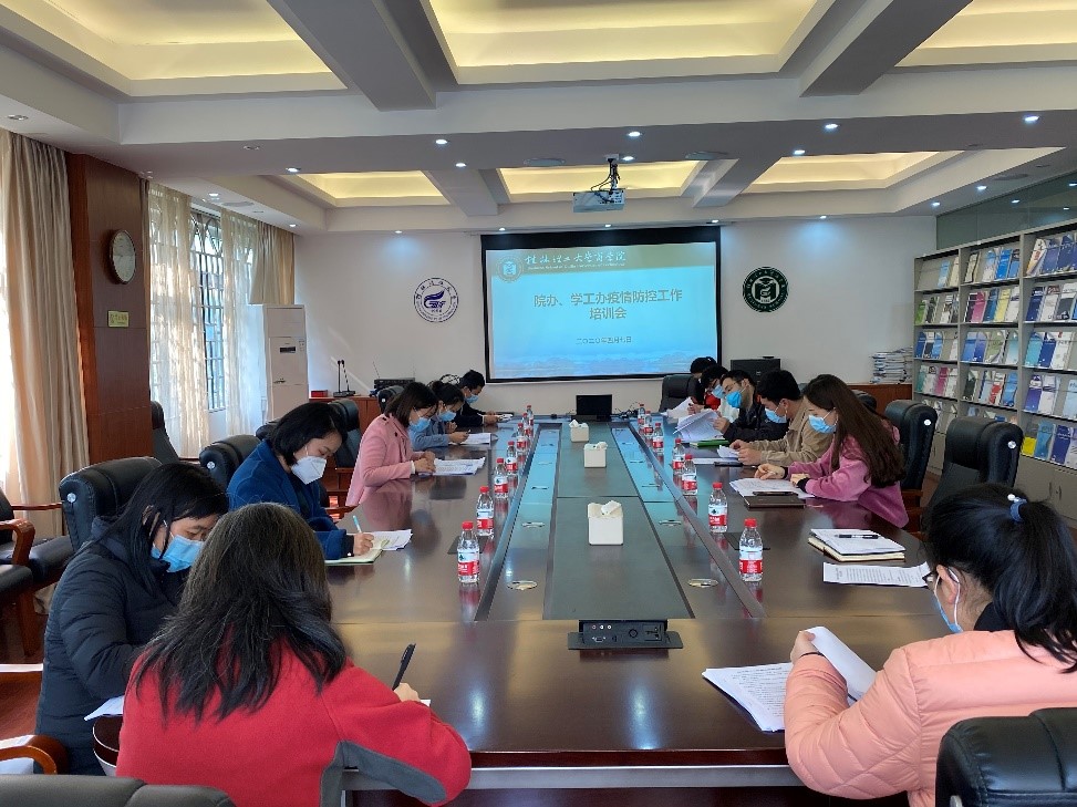 为切实做好学生返校前后新冠肺炎疫情防控工作,确保校园阵地安全和师生生命健康安全,4月7日下午,学院院办、学工办在屏风校区7206开展防控疫情知识专题培训,由学院党委副书记沈菲菲领学,院办、学工办全体工作人员...