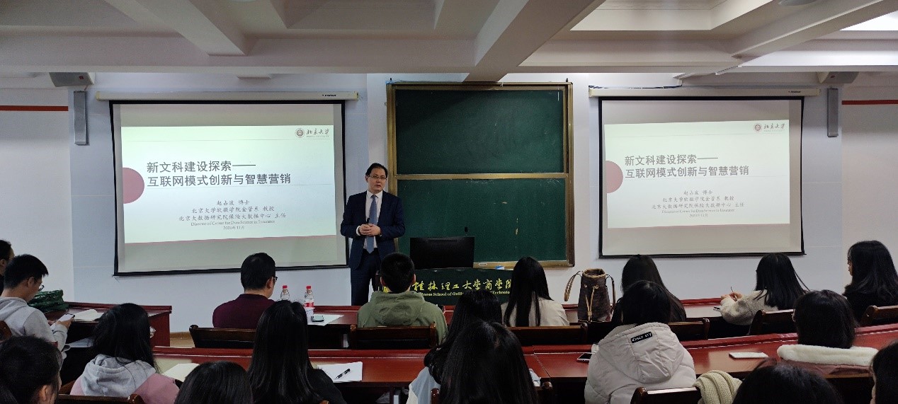 11月27日下午,北京大学软微学院金管系副主任、北京大数据研究院保险大数据中心主任赵占波教授在2138CC太阳集团2138CC太阳集团7311教室作题为“新文科建设探索—互联网模式创新与智慧营销”的学术讲座。讲座由市场营销教研室主任卜正学...