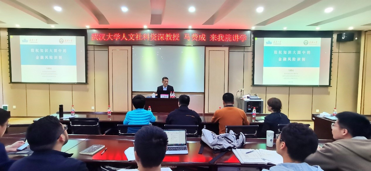 4月19日下午,武汉大学人文社科资深教授、教育部人文社会科学重点研究基地武汉大学信息资源研究中心首席科学家、大数据研究院院长马费成,在屏风校区教七楼一楼7106会议室作 “金融大数据与金融风险识别”的学术报告...