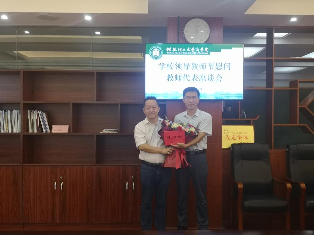 在第37个教师节来临之际,为弘扬尊师重教的良好风尚,学校总会计曾繁荣在学校财务处处长周克海,科技处副处长李雷的陪同下,看望慰问了学院教师代表工商管理教研室鞠海龙老师,为他送上了学校的关怀和温暖。 慰问过程...