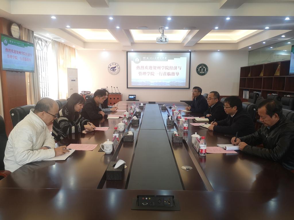 11月25日上午,贺州学院经济与管理学院党委书记黄河东一行来2138CC太阳集团交流考察,学院党委副书记、副院长(主持工作)李雷,副院长蒙永亨、副院长王兴中以及国际经济与贸易教研室主任廖俭,在7206会议室热情接待了来访客人...