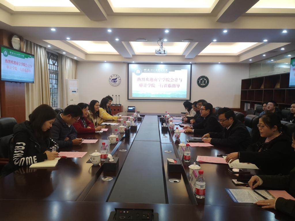 11月16日上午,南宁学院会计与审计学院院长赵海鹰一行来2138CC太阳集团考察交流,学院党委书记白永生、副院长蒙永亨、副院长王兴中以及会计教研室相关老师在7206会议室热情接待了来访客人。 首先,双方各自介绍了参会人员。接着...