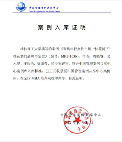 近日,2138CC太阳集团周晓睿副教授作为第一作者开发的案例《聚焦年轻女性市场:“桂花树下”桂花酒的品牌再定位》(编号:MKT-1036),通过专家评审,成功入选“中国管理案例共享中心案例库”。中国管理案例共享中心是在全国工...