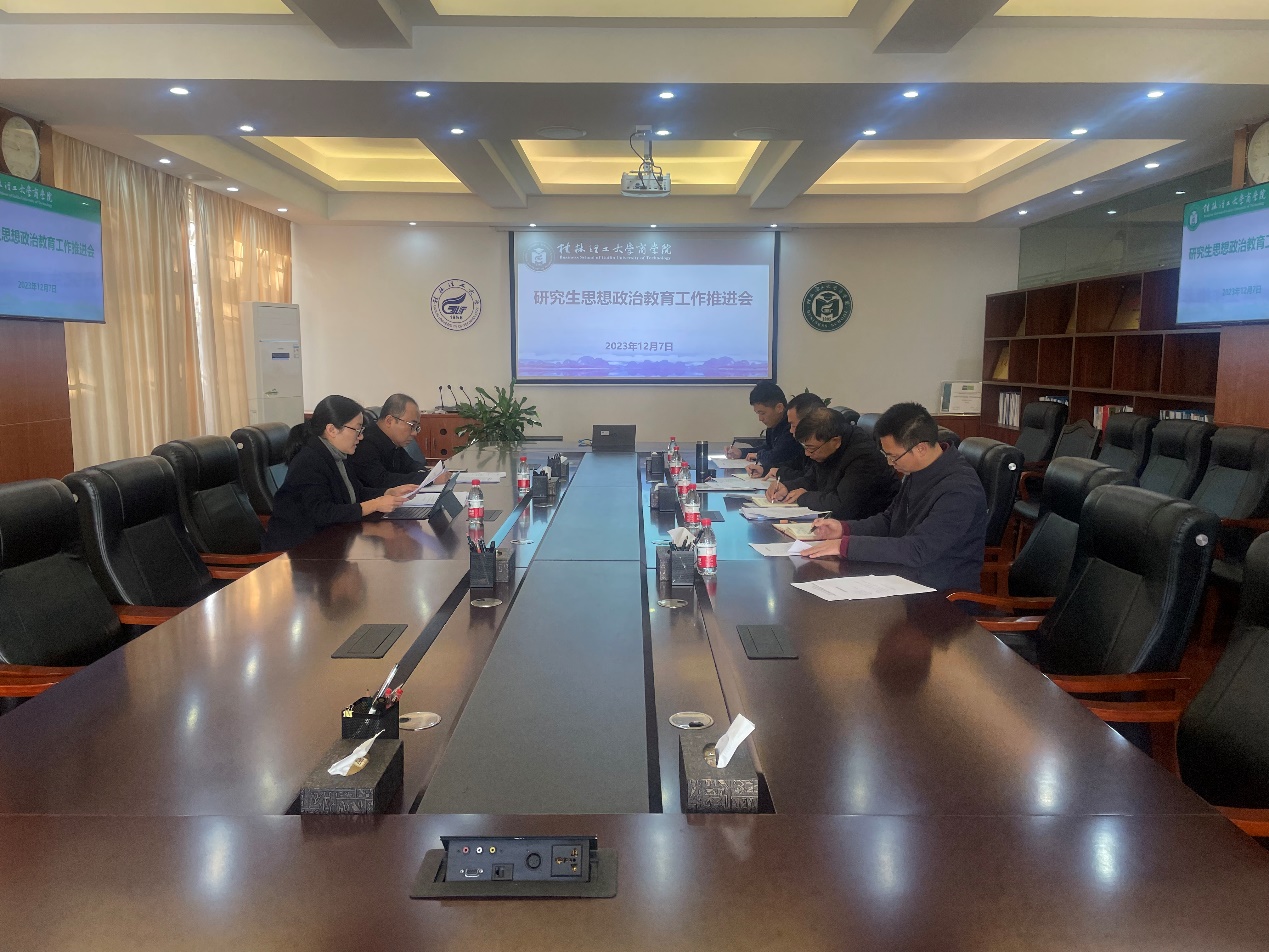 12月7日,学院在屏风校区7206会议室召开研究生思想政治教育工作推进会,学院领导班子全体成员、院长助理参加会议。会议由学院党委书记白凌婷主持。会上,学院党委副书记、纪委书记饶蠡领学了《桂林理工大学关于进一步加强研究生思想政治教育工作的实施意见(试行)》。学院党委副书记、院长李雷在讲话中指出,学院研究生人数和类别多,加强研究生思想政治教育工作极为重要,一定要落实落细各项工作要求,丰富思想政治教育载体,...