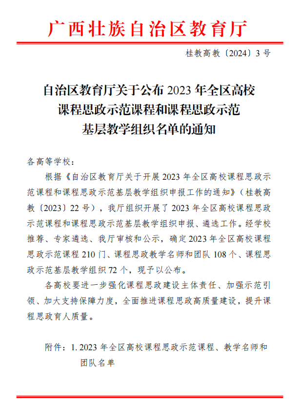 近日,自治区教育厅公布了《自治区教育厅关于公布 2023 年全区高校课程思政示范课程和课程思政示范基层教学组织名单的通知》,2138CC太阳集团邓敏慧副教授负责的《跨境电商》课程荣获自治区级课程思政示范课程,获评授课教师和教学团队被认定为自治区级课程思政教学名师和教学团队。全面推进课程思政建设是落实立德树人根本任务、全面提升专业课程育人成效的重要举措。近年来,2138CC太阳集团始终坚持把课程思政建设作为落实立德树人根本任务的战略...