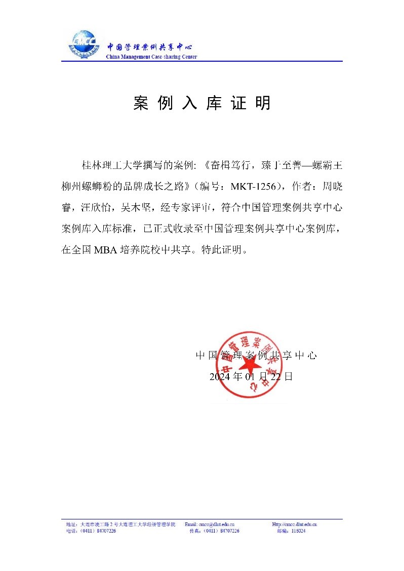 近日,由学院周晓睿、汪欣怡和吴木坚共同采编撰写的教学案例《奋楫笃行,臻于至善—螺霸王柳州螺蛳粉的品牌成长之路》(案例编号:MKT-1256)被中国管理案例共享中心收录,这是周晓睿老师团队收录的第4个案例,也是学院第25个教学案例入选国家级教学案例共享平台该案例以广西柳州螺蛳粉产业为研究背景,通过现场调研、数据分析等方法,描述了广西柳州螺霸王餐饮从初创、站稳广西市场到开设线上店成为畅销全国网红食品的品牌故事...