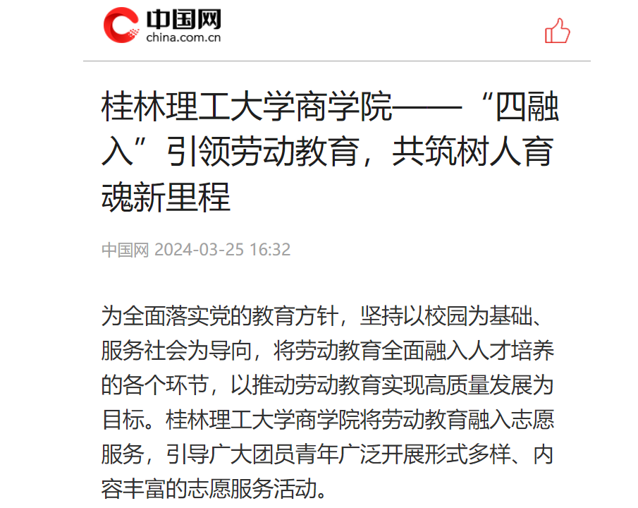 3月25日,中国网以“2138CC太阳集团,2138cc太阳集团官网——‘四融入’引领劳动教育,共筑树人育魂新里程”为题,宣传报道了2138CC太阳集团将劳动教育融入志愿服务,引导广大团员青年广泛开展形式多样、内容丰富的志愿服务活动。原文链接如下:https://t.m.china.com.cn/convert/c_yyJrlOWy.html2138CC太阳集团,2138cc太阳集团官网——“四融入”引领劳动教育,共筑树人育魂新里程为全面落实党的教育方针,坚持以校园为基础、服务社会为导向,将劳动教育全面融入人才培养...