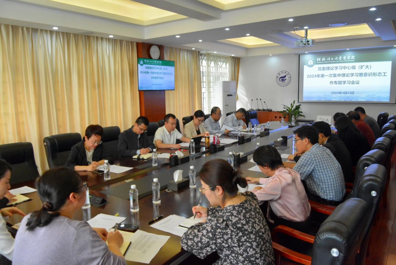 4月23日上午,学院党委在屏风校区7206会议室举行党委理论学习中心组(扩大)2024年第一次集中理论学习暨意识形态工作专题学习会,深入学习贯彻习近平总书记关于总体国家安全观重要论述、习近平总书记关于做好新时代党的统一战线工作的重要思想、习近平总书记在新时代推动中部地区崛起座谈会上的重要讲话精神,坚持学思用贯通、知信行统一,将学习成果转化为解决实际问题的能力。学院党政领导班子成员、党委委员、各党支部书记、...