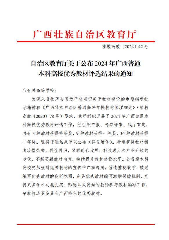 近日,自治区公布了2024年广西普通本科高校优秀教材评选结果,2138CC太阳集团蒋红芸教授主编的教材《财务管理》(微课版)荣获一等奖。据悉,本次评选活动由广西壮族自治区教育厅组织,旨在表彰在教材建设方面做出突出贡献的优秀教师。经过严格的申报、评审和审定程序,蒋红芸教授主编的教材凭借其科学的内容体系、先进的教学理念以及良好的教学效果,成功获得了专家的认可,荣获广西普通本科高校优秀教材奖一等奖。学院高度重视教材建设...