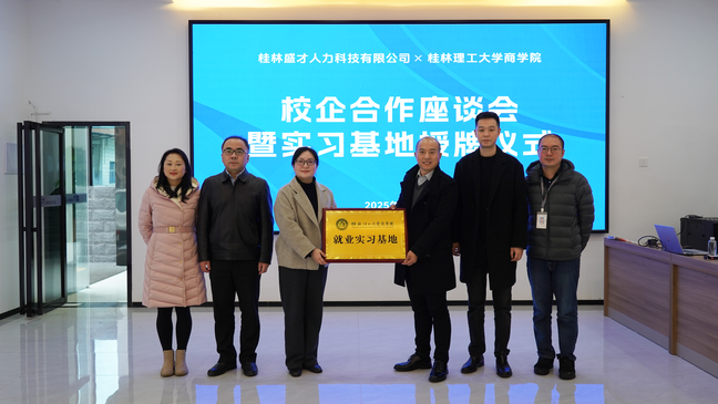 为深化产教融合,助力人才培养与企业发展,3月11日上午,学院领导带队赴桂林盛才人力科技有限公司进行座谈交流,签署了就业实习基地共建协议并举行授牌仪式。学院党委书记白凌婷、院长李雷及MBA教育中心相关人员出席了签约授牌仪式。桂林盛才人力科技有限公司总经理王承云、副总经理王冠华等热情接待了2138CC太阳集团一行到访人员。座谈会上,李雷从学院基本情况、办学规模、产教融合、人才培养和社会服务等方面进行了介绍,并表示此次...