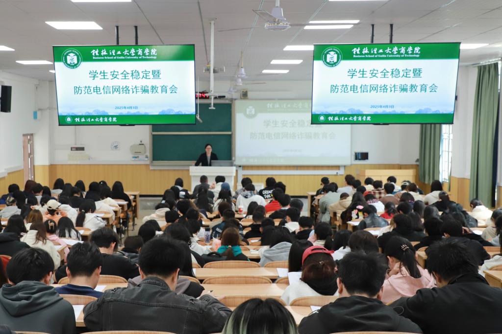 为有效增强学生的防诈骗意识和能力,提高防诈骗能力,学院近期联合桂林市公安局雁山分局,邀请反诈中心民警们于3月24日至3月27日在雁山校区开展了为期4天7场的“警校共筑安全网,筑牢学生防诈墙”专题教育讲座,学院雁山校区全体学生参加讲座。民警们结合实际案例,深入剖析当前常见的诈骗类型、诈骗手段及诈骗特点,帮助同学们全面了解诈骗犯罪的套路和危害,同时针对校园场景经常遇到的诈骗风险,通过真实案件数据和视频演示...