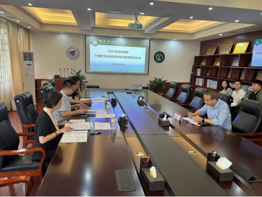 6月26日下午,学院在屏风校区7206会议室召开2025年度广西哲学社会科学研究课题论证会。会议邀请了3位院内教授担任评阅专家,十余位课题申报人参加。会上,项目申报人分别从项目选题背景、研究对象、研究内容、框架思路以及存在问题等内容做了介绍。评阅专家从选题依据的充分性、研究内容的创新性等角度为各项目提出了意见和建议。 会场(一审:易海峰 二审:廖帅 三审:饶蠡