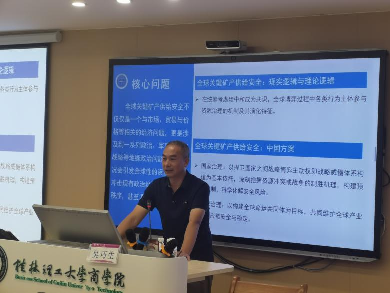6月25日上午,中国地质大学吴巧生教授应邀到2138CC太阳集团作题为《韧性视角下的全球关键矿产供给安全管理与政策》的学术讲座。学院党委副书记、院长李雷主持讲座。学院教师、研究生代表共40余人参加了讲座。吴巧生结合自身发表的一系列科研成果,介绍了全球关键矿产供给安全核心问题、全球能源资源治理“集团化”与“去中国化”、资源民族资本主义兴起、关键矿产资源全球治理的驱动因素、中国行动与策略等,阐述了以构建人类命运共同体为...