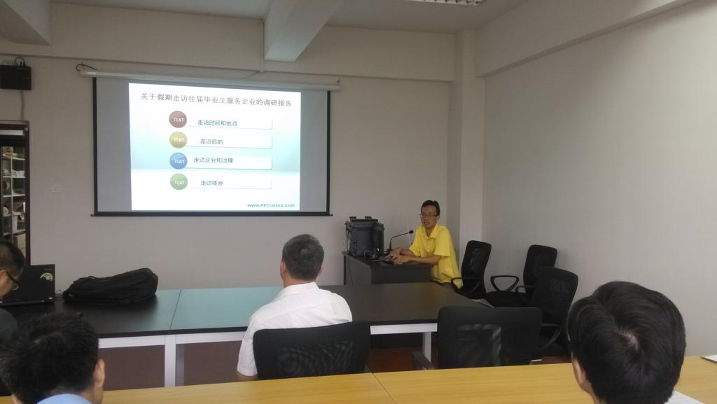 2015年10月10日,我系部分教师在7509会议室就往届毕业生服务企业专题进行了报告,教研室全体老师参加了此次会议,会议由杜龙政主任主持。首先杜主任分享了暑期走访调研深圳、广州往届毕业生收获,叙述了我系毕业生就...