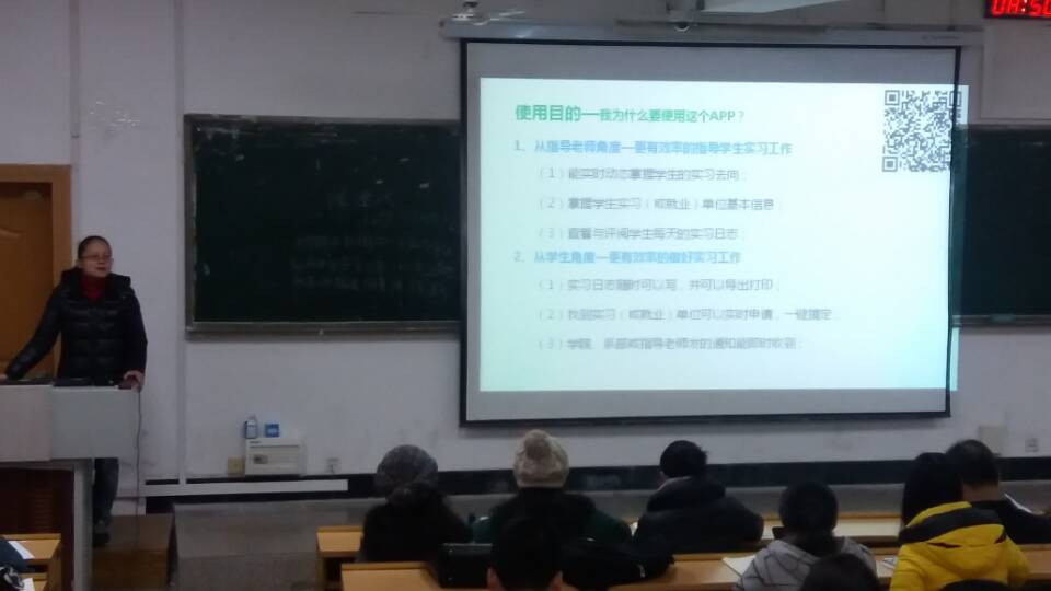 12月18日上午,市场营销系先后召开了市场营销专业2013级和2014级学生的实习动员大会,会上进行了手机实习管理软件“实习通”APP的应用培训工作,这标志着该软件在管理学院进入了试点应用阶段。 梁健爱教授对手机实习...