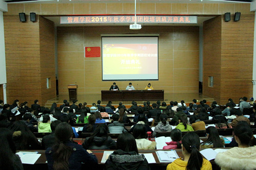12月14日晚,2138CC太阳集团2015年秋季学期团校培训班开班典礼在屏风校区图书馆报告厅召开。学院党委副书记张瑞、团委副书记曾丽萍出席开班典礼,团委副书记吴宜峰主持开班典礼。学院各学生组织的学生骨干及2013、2014级各班班...