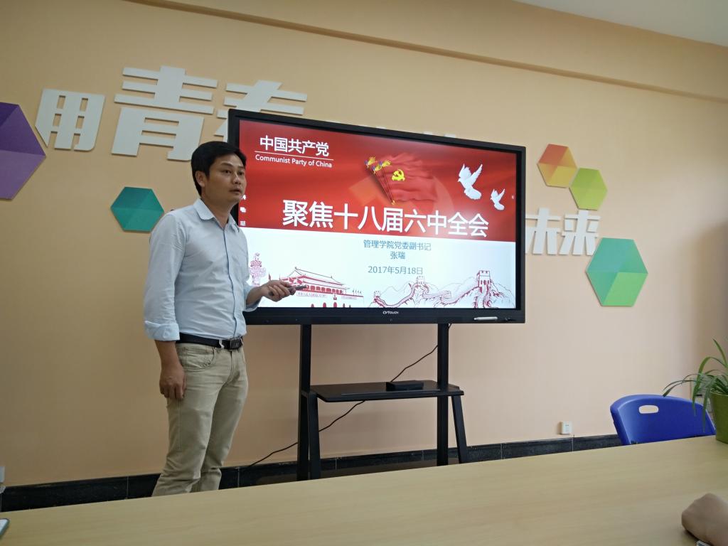 为进一步加深学生党员对时事政治的学习、加强基层党支部建设,近日,学院党委副书记、房产学生支部第一书记张瑞在学院路演中心以《聚焦十八届六中全会》为主题,给房产学生支部全体党员上了一堂生动的党课。 在课堂上...