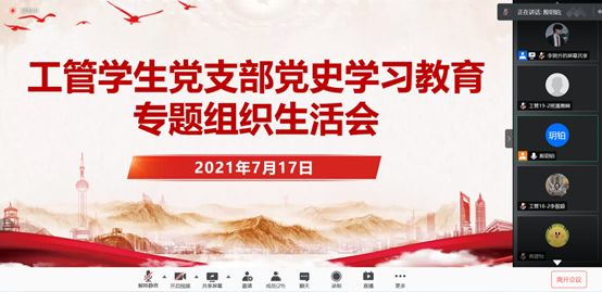 7月17日19:00,工管学生党支部通过线上腾讯会议召开专题组织生活会暨主题党日活动。本次活动由殷玥铂同志主持,支部全体成员参加。 会上,支部书记梁译匀老师首先组织学习了习近平总书记在庆祝中国共产党成立100周年...