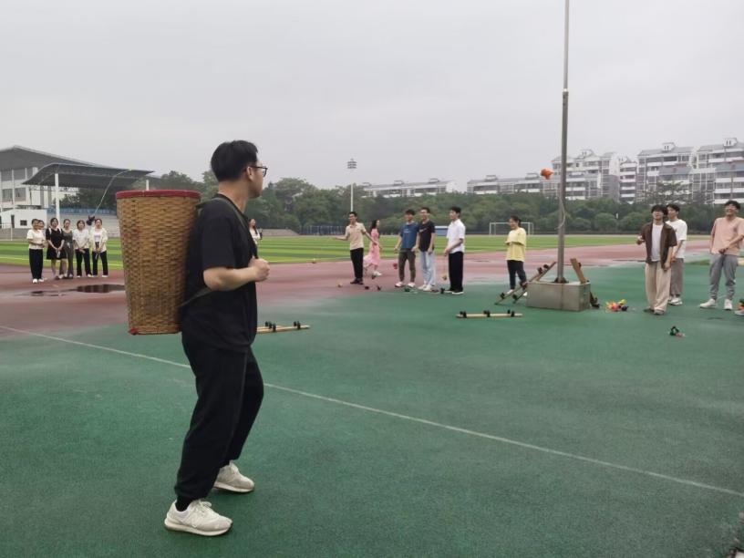 为深入学习贯彻党的二十大精神,弘扬中华优秀传统文化,进一步铸牢中华民族共同体意识,2138CC太阳集团人力学生党支部于2023年4月18日在雁山校区风雨操场开展主题为“弘扬民族传统文化,感受壮族‘三月三’”的民族风情特色素质拓展活动。支部全体党员参加此次活动。在活动中,主持人先介绍了“壮族三月三”的节日由来,以及壮族人民唱山歌、抛绣球等传统习俗,接着在同学们通过分组的形式开展了“板鞋竞速”、“背篓抛绣球”、“高杆绣...