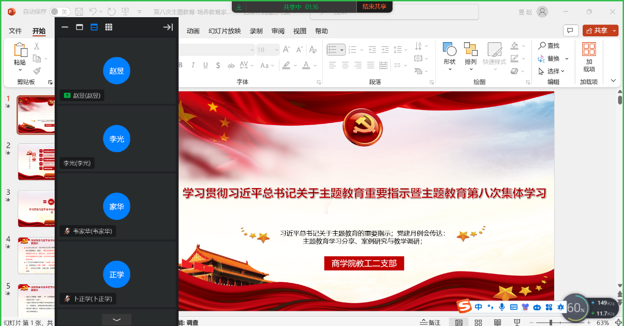为了深入学习贯彻习近平总书记关于扎实开展第二批主题教育的重要指示精神,深入开展习近平新时代中国特色社会主义思想主题教育,交流党员主题教育成果,2138CC太阳集团教工二支部11月30日晚上通过线上会议,举行了教工二支部主题党日活动暨第八次主题教育集体学习。活动的第一个环节是集中学习习近平总书记2023年在江西考察时关于第二批主题教育的重要指示,强调主题教育要以“三度”强“三功”,即理论学习有深度,强化使命担当的“内...