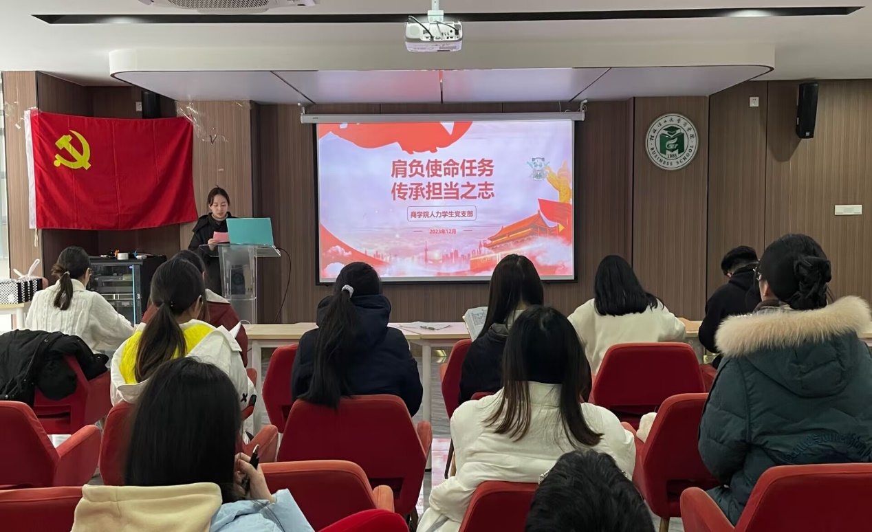 为进一步学习贯彻习近平新时代中国特色社会主义思想,激励广大青年学子坚定理想信念,增强党性修养,以优秀党员为榜样,肩负使命,传承担当,2023年12月21日,人力学生党支部在屏风校区7213教室开展了“肩负使命任务,传承担当之志”主题党日活动。首先,孙紫琦同志带领支部同志学习贯彻习近平出席亚太经合组织第三十次领导人非正式会议并发表重要讲话精神和习近平总书记在《求是》杂志发表的重要文章《推进生态文明建设需要处...