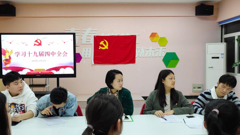 为深入学习贯彻落实党的十九届四中全会精神,11月14日下午,营销学生党支部共同学习党的十九届四中全会主要内容,支部全体成员参会。 会议伊始,支部书记杜若菡老师带领大家回顾了中共十九届四中全会的召开情况,学习...